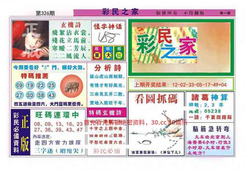 | 326期七码 | 09.02.05.10.19.24.30 | 猪19中 |